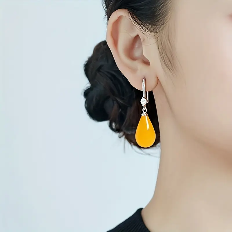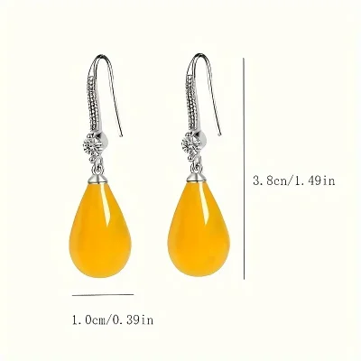Kehribar Doğal Taş Su Damlası Küpe – Zarif ve Şifalı